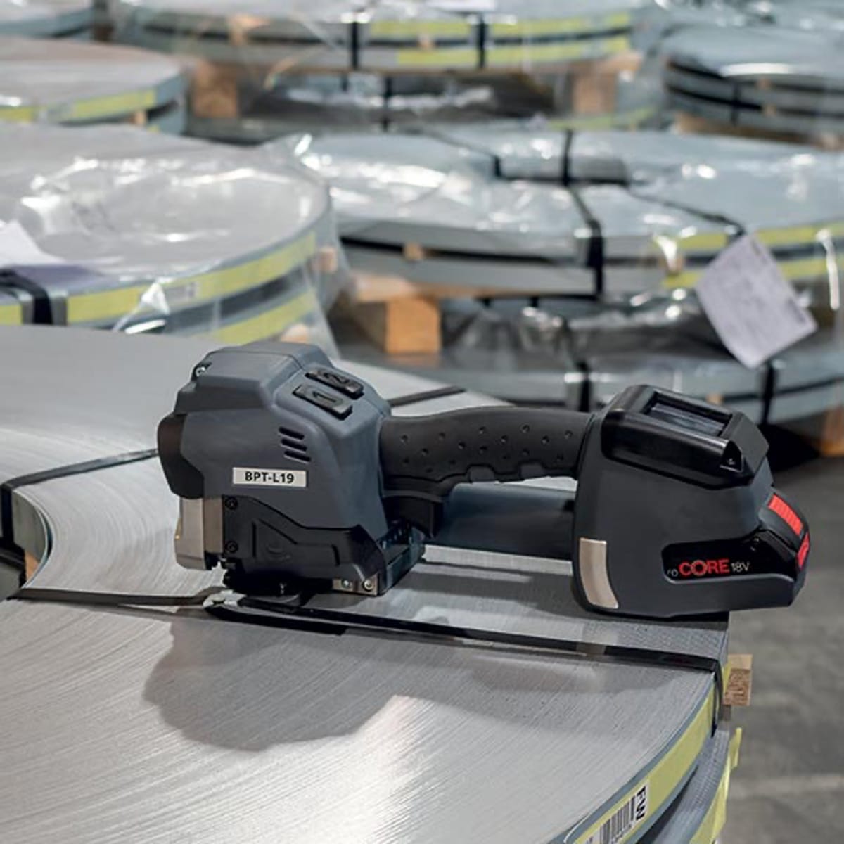 The Signode BPT-L19 is a powerful battery-operated strapping tool for steel strapping engineered specifically for use with steel strapping in demanding industrial environments. Compatible with standard and high-tensile steel in widths up to 19 mm, the BPT-L19 offers high tensioning capability, precision sealing, and reliable performance without the need for compressed air.